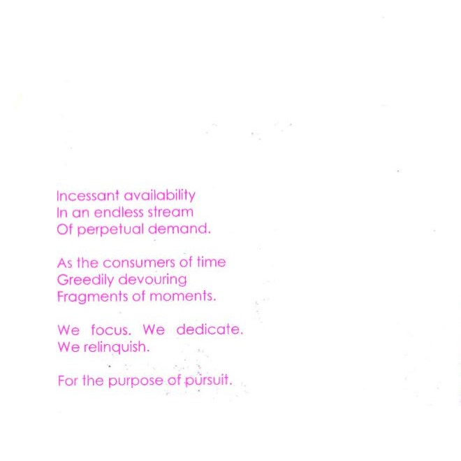 The topic of compulsory efficiency is examined illustratively and through lyrical texts. The subtitle A momentary lapse of reason alludes to the price we pay in order